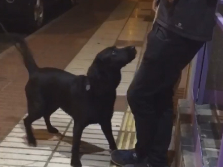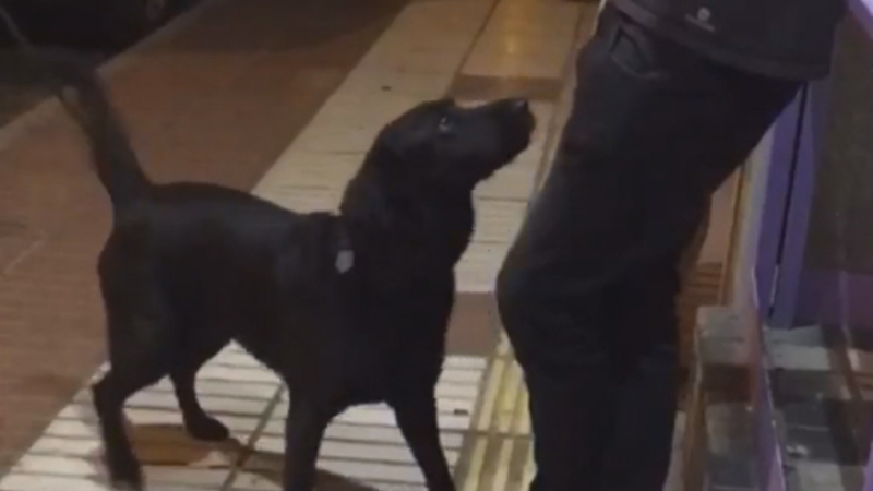 Policía Local fra Las Palmas på Gran Canaria har netop offentliggjort en video, der viser, hvordan den sorte hund lynhurtigt snuser sig frem til en pose marihuana i bukselommen på en fyr, som politiet har stoppet på gaden.