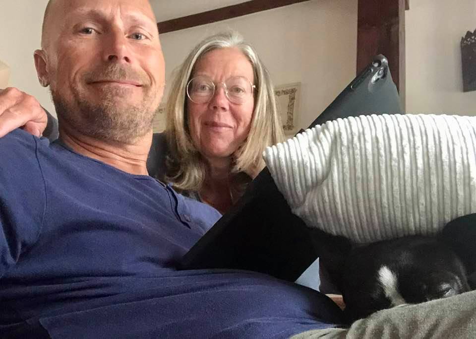 Catharina og Hans mens de stadig var i karantæne på Mallorca med hunden
