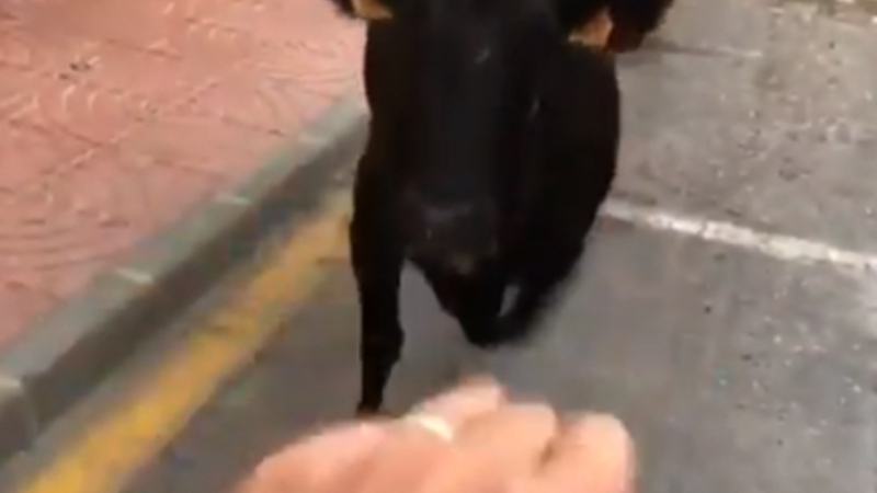 I videoen kan vi se ham vifte provokerende med fingrene foran tyrens hoved, da den pludselig får nok.