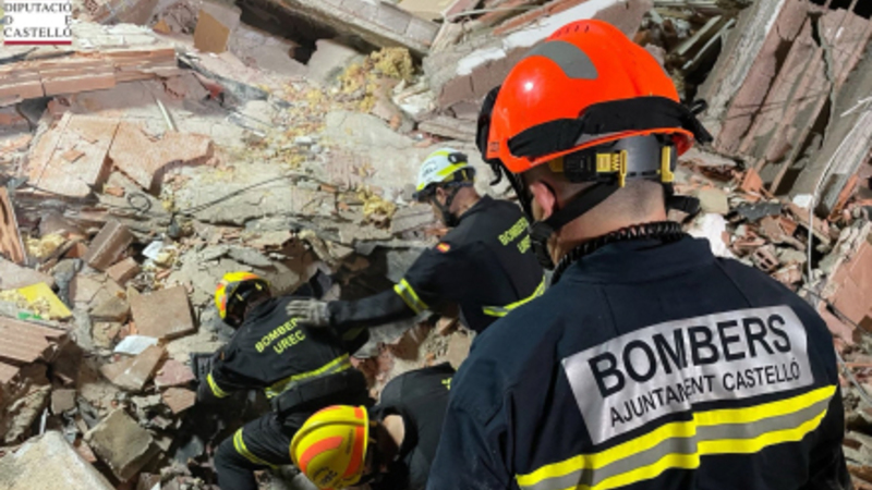 VIDEO: Tre-etagers bygning i Valencia Regionen er kollapset ned over flere personer. Én er reddet ud i live, én er fundet død, mens hunde netop har lokaliseret en overlende kvinde, der ligger fastklemt.