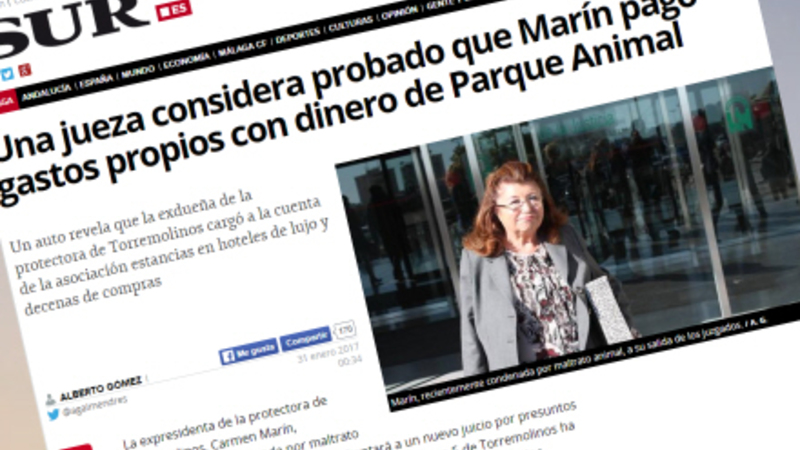 En undersøgelsesdommer overvejer nu at anklage centrets leder, Carmen Marín, for at have betalt egne udgifter med tusindvis af euro fra Parque Animal i Torremolinos.