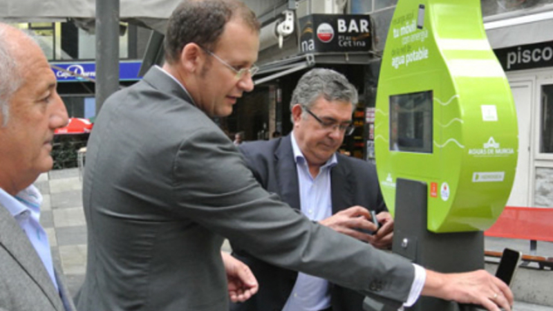Et initiativ fra Smart Murcia har opstillet ladestationerne, som udnytter vanddreven teknologi til at oplade forbipasserendes mobiltelefoner - helt gratis.