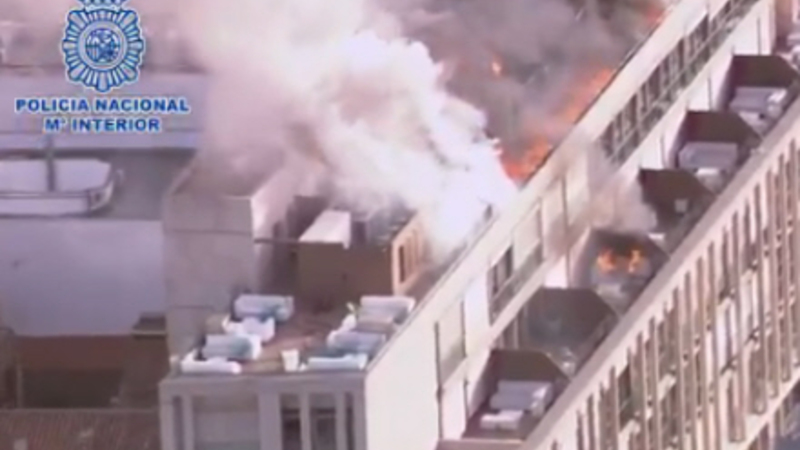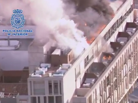 Det lykkedes for de dygtige brandfolk at begrænse ilden til toppen af Hotel Gran Vía Capital, og der var aldrig nogen reelt risiko for branden ville sprede sig til resten af bygningen.