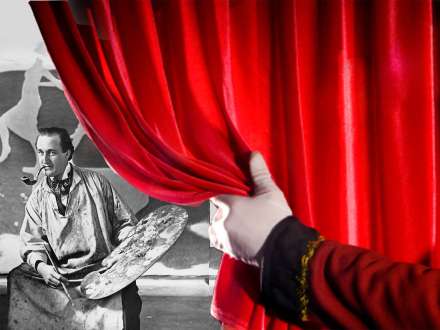 Bag teater-tæppet sidder Storm P. Selv om mange andre kræver ophavsretten til “Det er svært at spå - især om fremtiden”, så kender jeg det bedst fra Storm P’s egen tegning om det.
