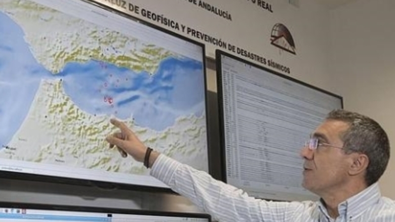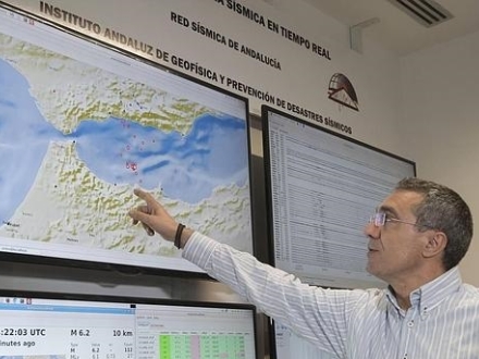 NATUR: Direktøren for det andalusiske geofysiske institut viser, hvor man har kunne mærke jordskælvet.