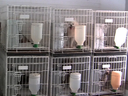 Hundene havde minimal plads at bevæge sig på