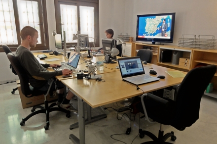 ..sådan så det ud fredag klokken 12:56 og alt virkede! Og sådan skal en redaktion i øvrigt se ud.
