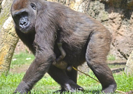 Den lille gorilla kom til verden for øjnene af havens besøgende omkring klokken 13:30. Efter den naturlige fødsel, åd moderen hurtigt moderkagen og begyndte så straks at gøre ungen ren, mens hun nysgerrigt og nænsomt inspicerede den lille ny. Navlestrengen sidder fortsat på ungens mave, indtil den tørrer ind og falder af af sig selv.