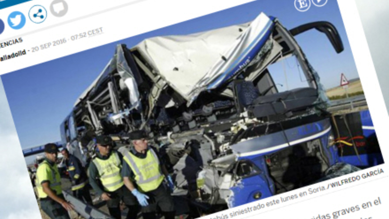 Lastbil og bus kolliderede i går, da de kom kørende på motorvej A-15. Det skriver El País.
