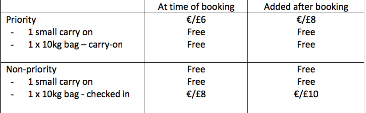 Tidligere kunne alle ikke-priority-passagerer medbringe en lille håndbagage og en større taske eller kuffert gratis.