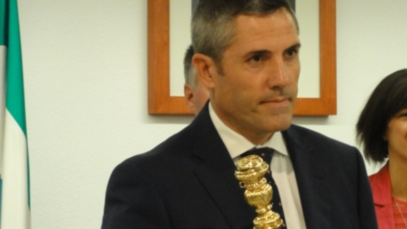 José Manuel Paez i grå habit. Til venstre afgående borgmester Angel Nozal
