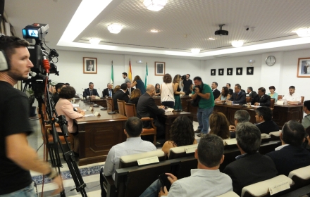 På slaget 12:00 startede det konstituerende byrådsmøde. Seancen blev ledet af kommunens sekretær, José Manuel Paez.