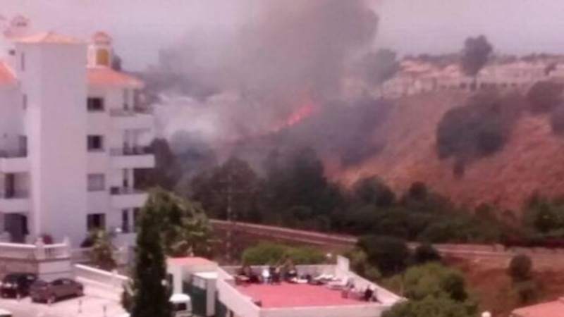 Område lige bag beboelsesejendomme i Riviera-området nær Marbella, Málaga, står i flammer. Det er uhyggeligt tæt på boligområde, og flere er evakueret.