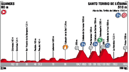 Efter starten i Suances køres der langs den smukke cantabriske kyst til Vicente de la Barquera, drejes der ind i landet , hvor der blandt andet køres langs los Picos de Europas bjergsider.