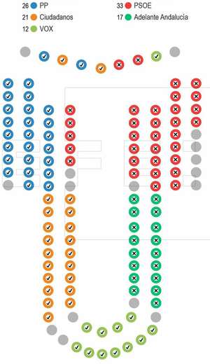 Efter afstemningen kunne præsidenten for parlamentet, Marta Bosquet (C’s)- svarende til Folketingets formand - konstatere, at Juanma Moreno havde opnået parlaments tillid med absolut flertal.