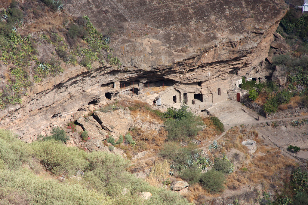 Risco Caido ligger på en stejl bjergside nær Barranco Hondo og består af i alt 21 huler.