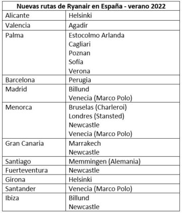 Ryanair offentliggjorde i går sin flyveplan for sommeren 2022 for Spanien, som omfatter 22 nye ruter. Selskabet vil dermed have flere end 670 ruter til flere europæiske destinationer fra spanske lufthavne.
