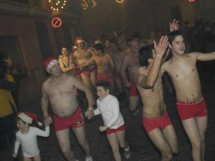 De lokale smider ganske enkelt tøjet og spæner gennem gaderne for at fejre det nye år - uanset hvordan vejret er. Og her kan temperaturen altså sagtens ligge omkring frysepunktet, så det er nok meget godt, at traditionen er forbundet med en smule motion.