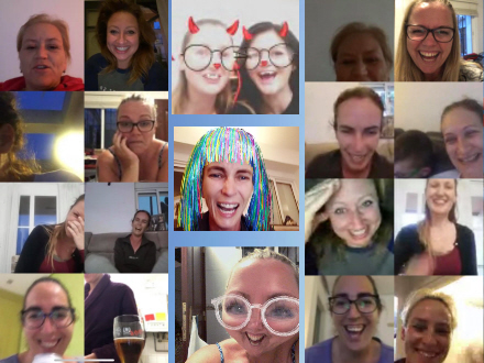 Et enkelt tryk på telefonrørs-ikonet, og pludselig var de otte veninder samlet.