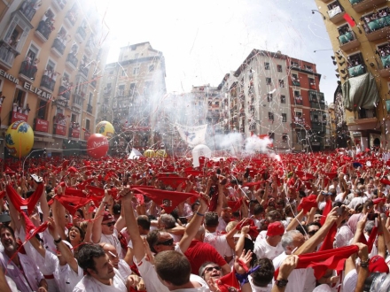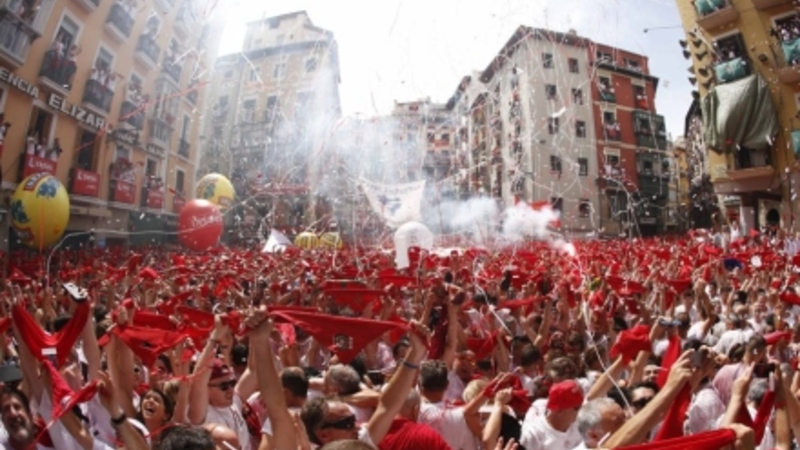 I Pamplona indvies årets byfest ‘San Fermin’ ved, at der fra pladsen foran rådhuset affyres raketter