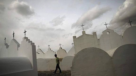 Det usædvanlige ved denne kirkegård er, at dens nicher har samme farve, som er fremherskende i landsbyen: Hvid.