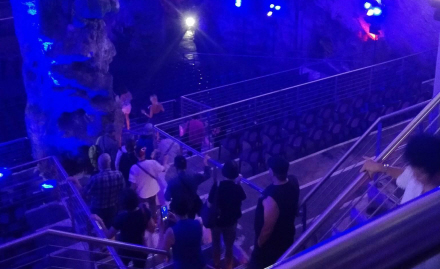 Vi havde meget lidt tid til at se Herkules' søjle. Bagefter skulle vi køres op til drypstensgrotter, der bruges til koncerter.