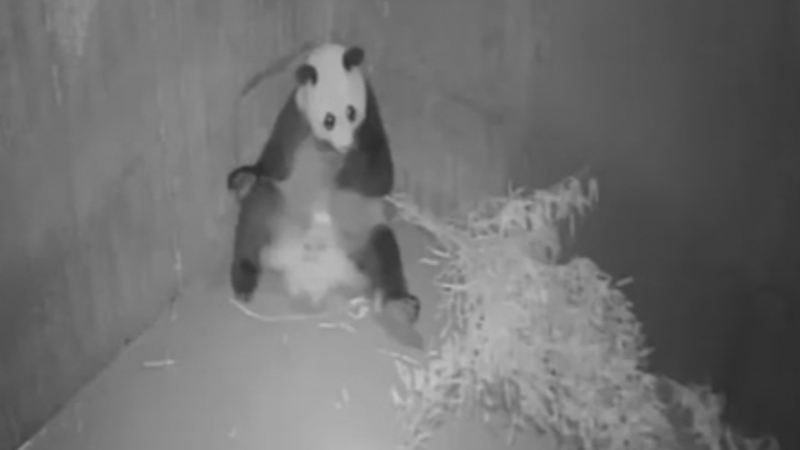 Da hun begyndte at slikke sine poter, var det et tydeligt tegn på, at det var tæt på. Men modsat mennesker, der skal presse en vandmelon gennem et nåleøje går det noget hurtigere i panda-verdenen. Det tog præcist fire minutter.
