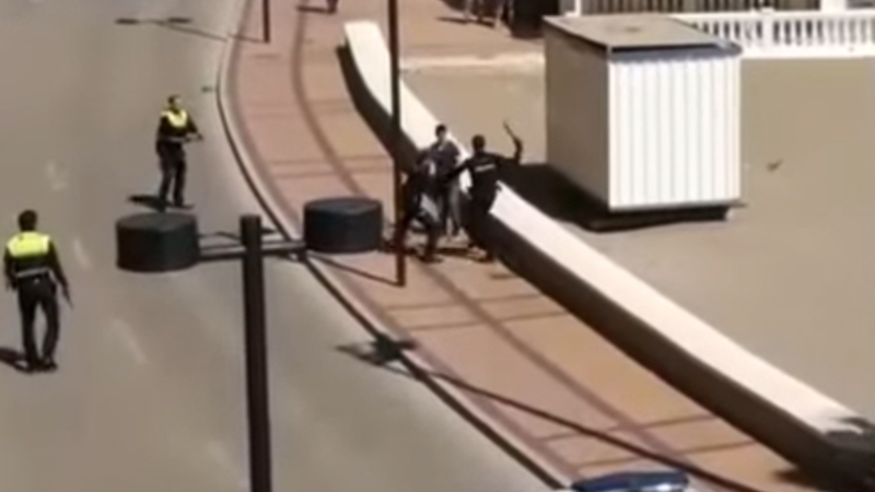 VIDEO: Bevæbnet mand spredte frygt på populær promenade på Costa del Sol. Policía Nacional lukkede festen.