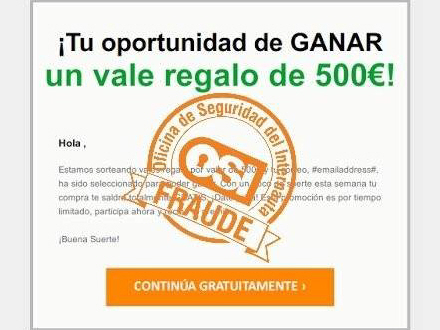 Her opfordres man til at deltage i en lodtrækning for at få rabatkort til kendte firmaer som El Corte Inglés, IKEA, Aldi, Spar, Peugeot, Leroy Merlin, H&M, Primark, Carrefour, Vueling og Amazon.