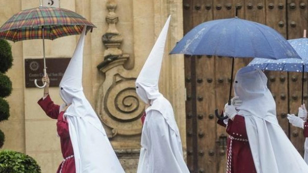 De seneste ugers regn har lagt en dæmper på det meste af påskeugen, da de traditionelle troner med Jesus og de andre rødder ikke kan tåle vand.