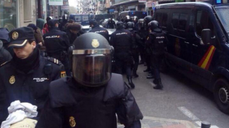 Og inden politiet kom ind i lejligheden, smadrede de en glasdør, som demonstranterne forsøgte at holde lukket. Glaskårene regnede ned over demonstranterne, der derefter blev slæbt væk. Ifølge Typically Spanish blev fire af aktivisterne anholdt.