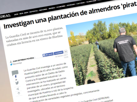Efter at have taget prøver af de forskellige mandelsorter kunne betjentene konstatere at 16 af gårdens sorter er beskyttet af en monopolaftale mellem staten og en privat virksomhed.