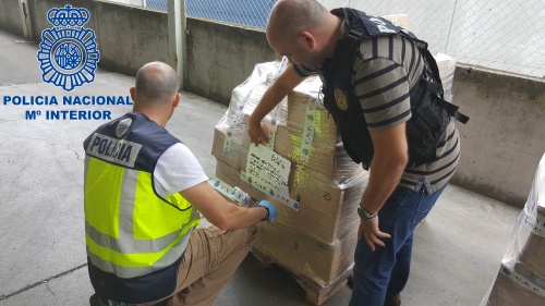 Spansk og portugisisk politi i færd med at undersøge fangsten (foto: Policía Nacional)