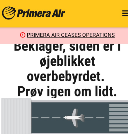 "Det er en trist dag for alle ansatte og Primera Airs passagerer. Selskabet har gennem de seneste måneder arbejdet på at sikre finansiering af flyselskabet på lang sigt.