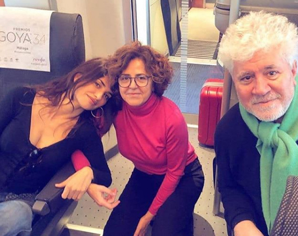 Penélope Cruz (tv) og Almodóvar tog toget lørdag til prisuddelingen