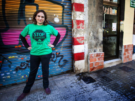 Det drejer sig om Ada Colau i Barcelona fra listen 'Barcelona en Comú'. Hun er kendt som en social aktvist, og en stærk modstander af tvangsudsmidninger.