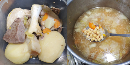 Denne opskrift er en kød- og grøntsagssuppe, som fremstilles forskelligt i hvert hjem. Hver familie bruger deres foretrukne ingredienser, svinekød, oksekød, kylling, frisk bacon eller skinke fra svineben. Variationerne er næsten uendelige.