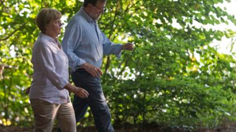 Mariano Rajoy har slentret en god lang tur med sin gamle veninde Angela Merkel for at samle støtte til sin kommende genvalgskampagne i slutningen af året.