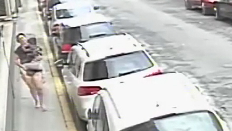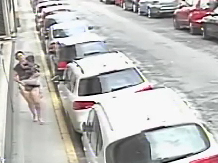 Politiet i Huelva bemærkede forleden på overvågningskameraer, hvordan en kvinde desperat spænede af sted barfodet med et barn i armene.
