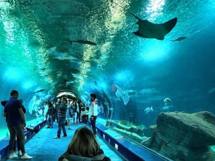 Folk vælter ind for at se de pink flamingoer vise deres lange ben, de hvide hvaler med nuttede smil og farlige hajer, der svømmer lige hen over hovedet.