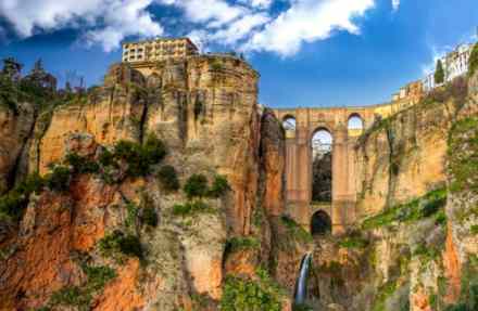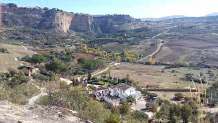 Vi ser Rondas berømte bro 'Puento Nuevo' fra neden og følger den gamle møllesti som bugter sig langs Guadalevin-floden nede i dalen.