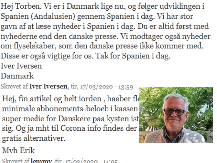 Sidder du - eller I - isoleret i jeres bolig i Spanien og har humøret lidt i bund, så tøv ikke med at sendte en email til mig. Måske kan vi på redaktionen gøre ét eller andet for dig eller jer...