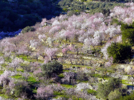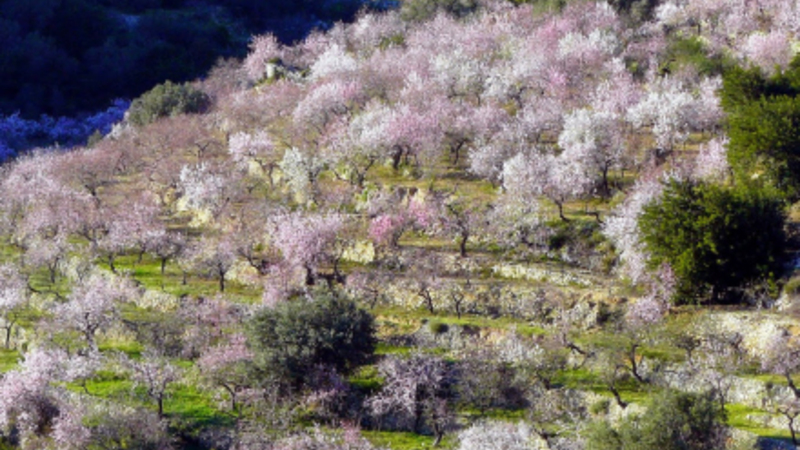 Så er det snart ved at være sidste udkald, hvis du vil opleve det smukke syn af landskaber dækket af blomstrende mandeltræer.