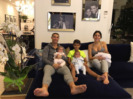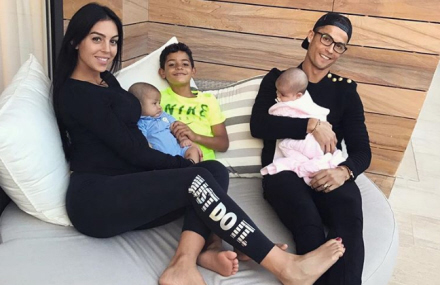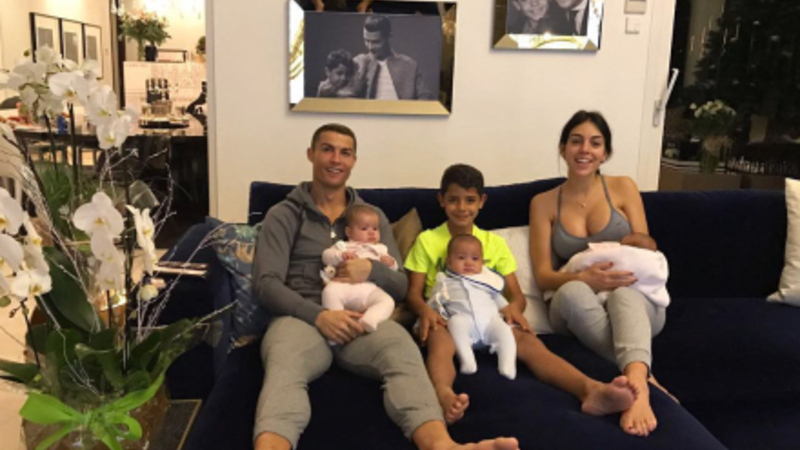 Mandag delte Georgina et billede af hele familien. Cristiano, Georgina, Cristiano Ronaldo Jr, Alana, og tvillingeparret Eva og Mateo, som blev født af en rugemor.