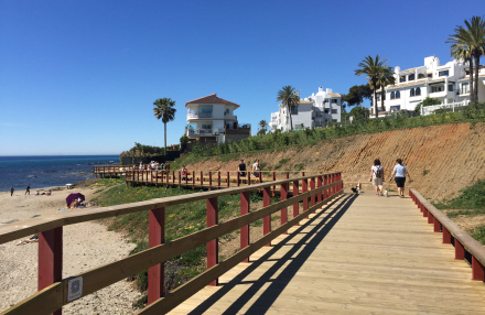 Den næsten seks kilometer lange gangbro ved Mijas blev faktisk indviet allerede i november sidste år, men nu er vejret virkelig ved at være der, hvor en lille gåtur sagtens kan erstatte en tur på stranden.