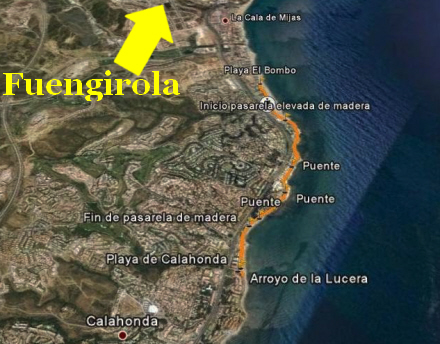Stien går mellem La Cala de Mijas og Max Beach-restauranten. Meningen er, at udvide stien fra La Cala til Fuengirola, selvom terrænet komplicerer det en smule, da M340'eren nogle steder går helt ud til kanten. Men der arbejdes på en løsning.