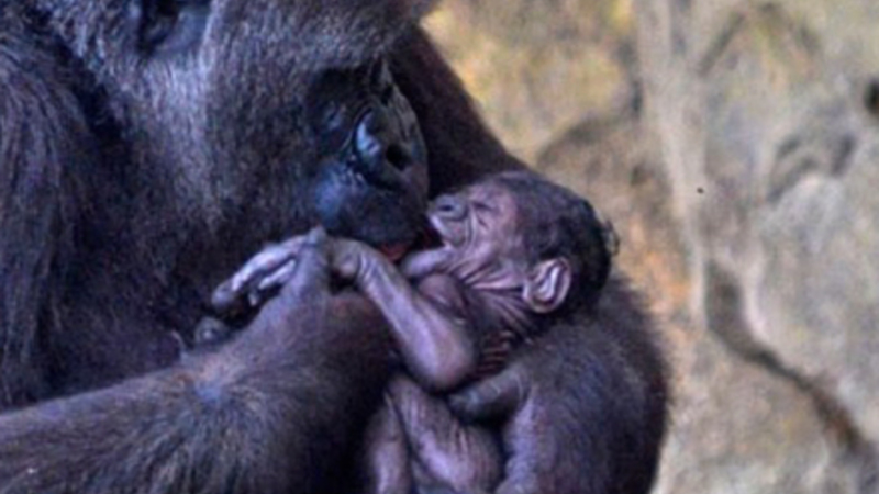 VIDEO: Chimpanse i Bioparc i Valencia fødte med publikum på. Og hun er bare en god mor!