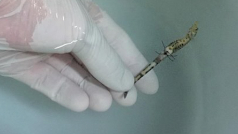 Den lille søhest har overlevet takket være akvariets veterinærer. Specialisterne behandlede det lille dyr, efter den havde født ikke færre end 1.000 unger, hvilket medførte problemer med udrugningsposen.