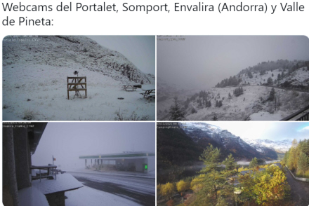 Det kan ses på kameraerne fra Larra-Belagua-området i Navarra, der ligger i 1.595 meters højde og på webkameraet fra Formigal-skisportsstedet i Huesca i 1.500 meters højde.