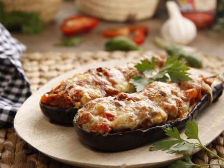 Bagte fyldte auberginer
